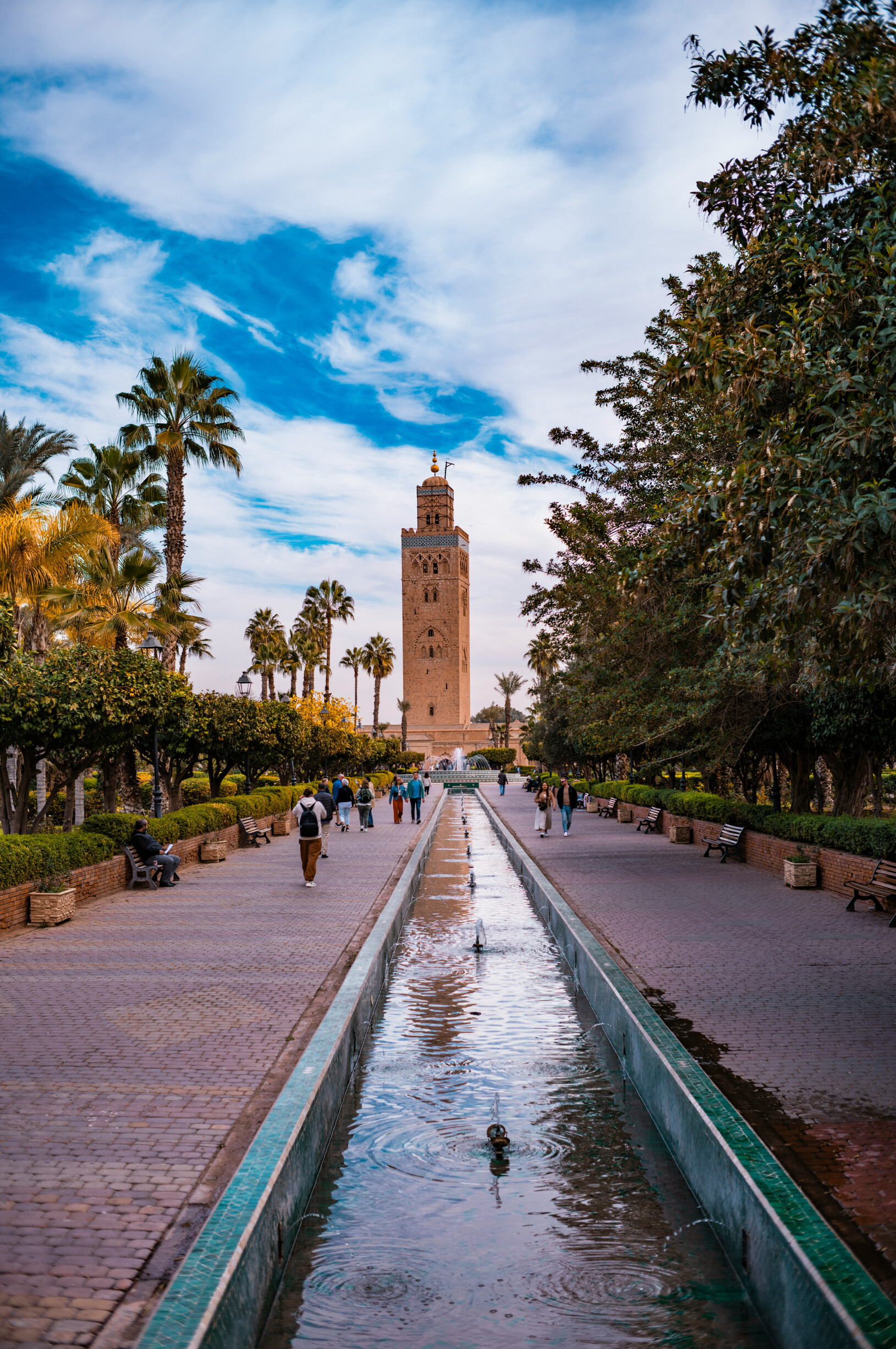 Visita de Marraquexe: Jardim de Menara com vista para o Atlas, minarete da Koutoubia e Palácio Bahía. Almoço no hotel. À tarde, excursão ao deserto de Agafay com passeio de camelo; jantar no acampamento e regresso a Marraquexe.